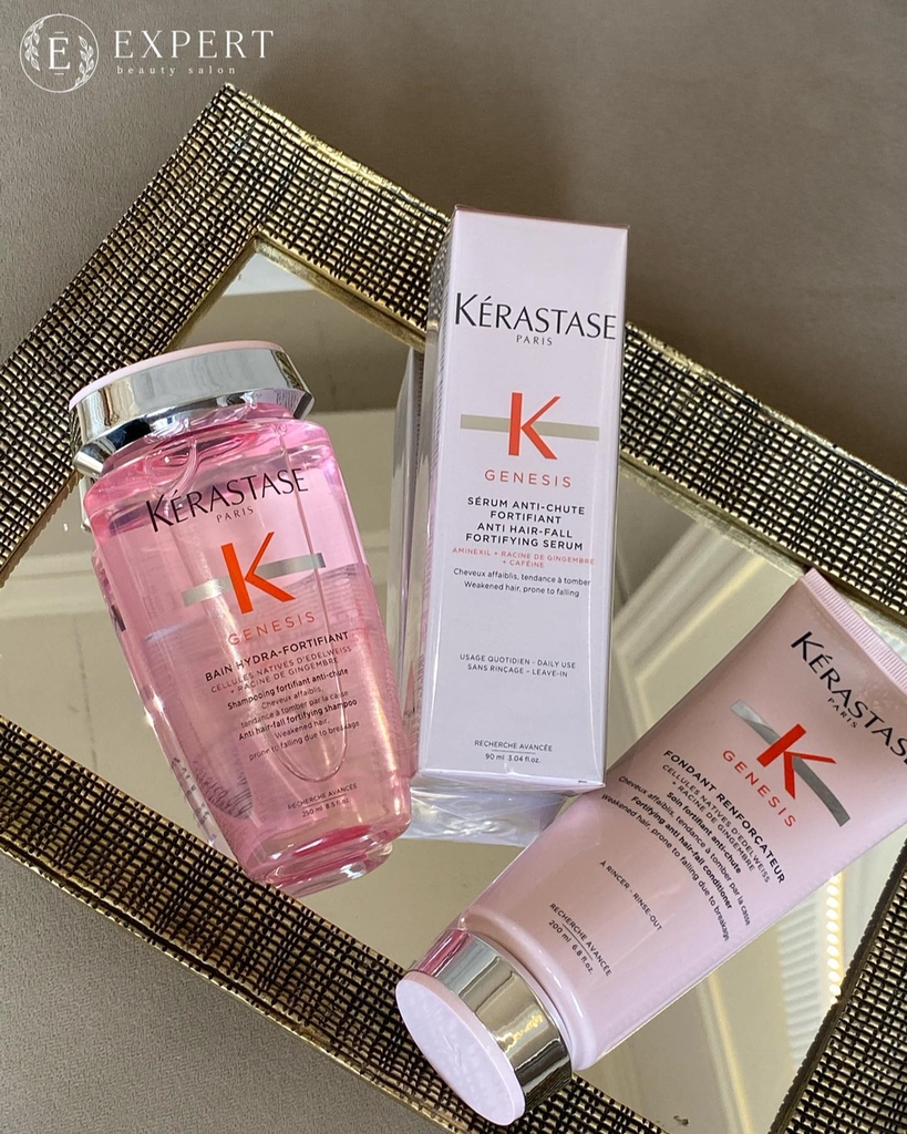 dầu gội và dầu xả Kérastase Genesis – dòng sản phẩm cao cấp của Pháp chuyên giảm rụng tóc, phục hồi sợi tóc yếu. Dòng này chia thành 2 loại khác nhau cho tóc dầu và tóc khô: