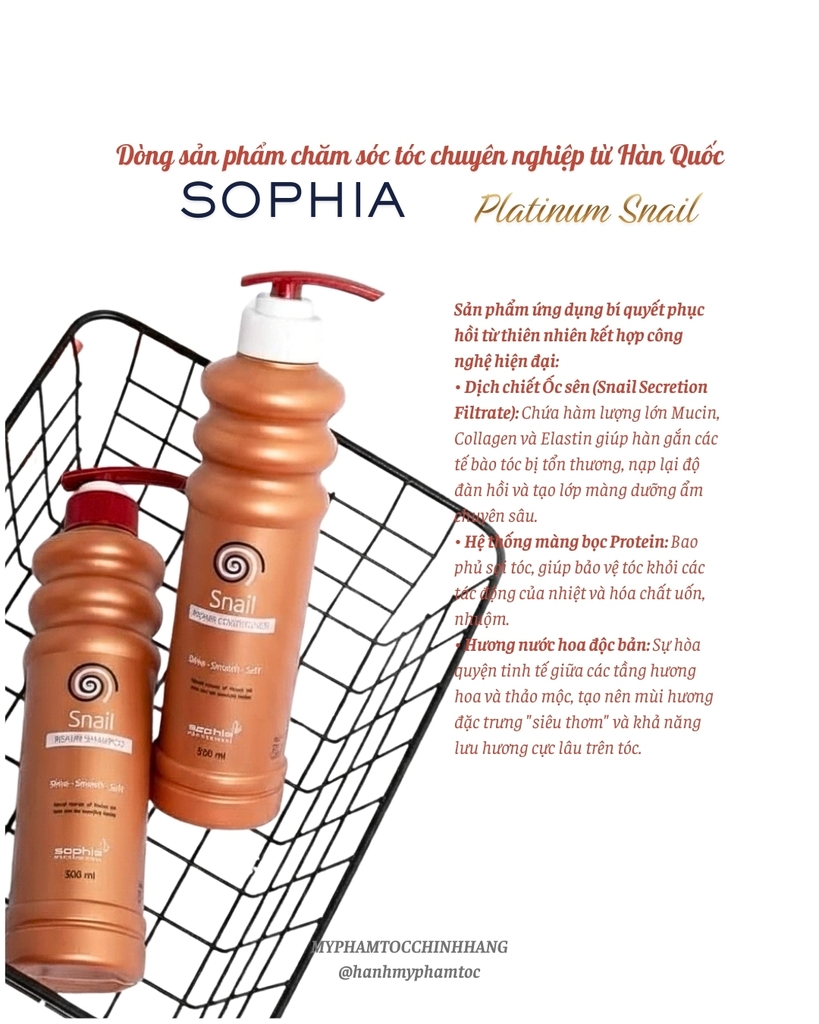 #SophiaSnail #DauGoiOcSen #PhucHoiTocHuTon #SnailShampoo #SnailConditioner #ChamSocTocChuyenSau #TocSuonMuot #KBeautyHairCare #NoParabenNoSulfate #SophiaProfessional #HairRepairMagic #DuongTocHangNgay