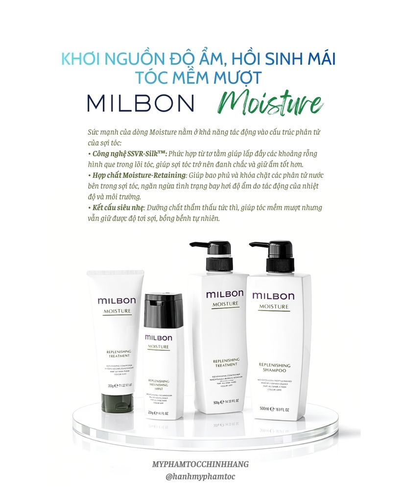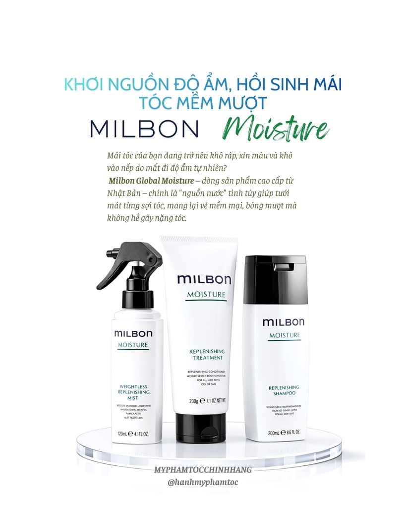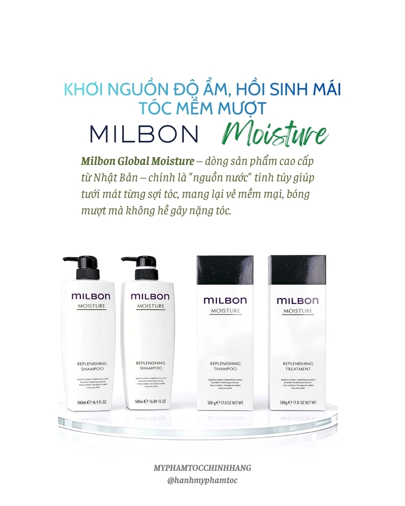 Dòng Replenishing Moisture nằm trong hệ thống Milbon Global – sản phẩm chuyên nghiệp thường dùng tại salon.