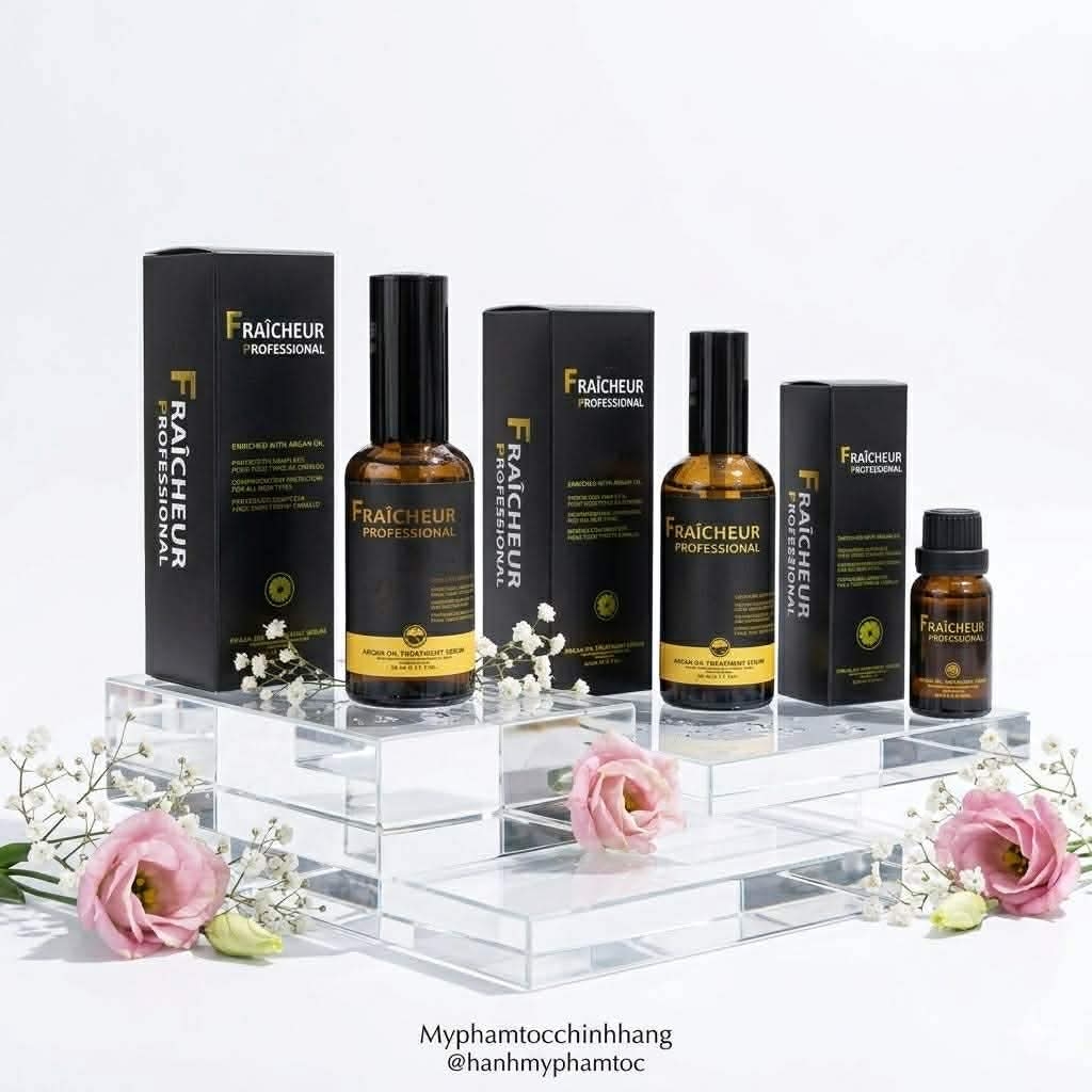 Tinh Dầu Dưỡng Bóng Fraicheur Argan Oil Treatment – sản phẩm cao cấp giúp phục hồi và làm bóng tóc tức thì, phù hợp với cả salon và người dùng tại nhà: